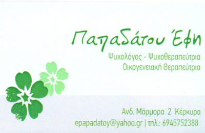 customer tabsΕπικοινωνίαΨυχολόγος Συστημική - Οικογενειακή Θεραπεύτρια“BTEC Professional Certificate”, EDEXCELΠιστοποιητικό Ειδίκευσης στη Συστημική και Οικογενειακή Θεραπεία|(4ετές πρόγραμμα εξειδίκευσης στη Συστημική Ψυχοθεραπεία στο Εργαστήριο Διερεύνησης Ανθρώπινων Σχέσεων).Μέλος της Ελληνικής Εταιρείας Συστημικής Θεραπείας (ΕΛΕΣΥΘ). Ατομική ψυχοθεραπείαΨυχοθεραπεία ΟικογένειαςΣυμβουλευτική οικογένειαςΣυμβουλευτική γονέωνΠροβλήματα συμπεριφοράς εφήβωνΘεραπεία ζεύγουςΟμαδική Ψυχοθεραπεία Στοιχεία Αναζήτησης: Ατομικη, Οικογενειακη, Ψυχοθεραπεια, Εφηβεια, Καταθλιψη ΨυχολόγοιΨυχοθεραπευτέςΥγείαΜαρμορά Ανδρέα 2, 3ος όροφος, ΚέρκυραΚΕΡΚΥΡΑΝΗΣΙΑ ΙΟΝΙΟΥ ΠΕΛΑΓΟΥΣ 6945752388 epapadatoy@yahoo.gr Το προτείνω (έχει προταθεί 0 φορές) ΦωτογραφίεςFacebook LikeShare on FacebookTweet Widget